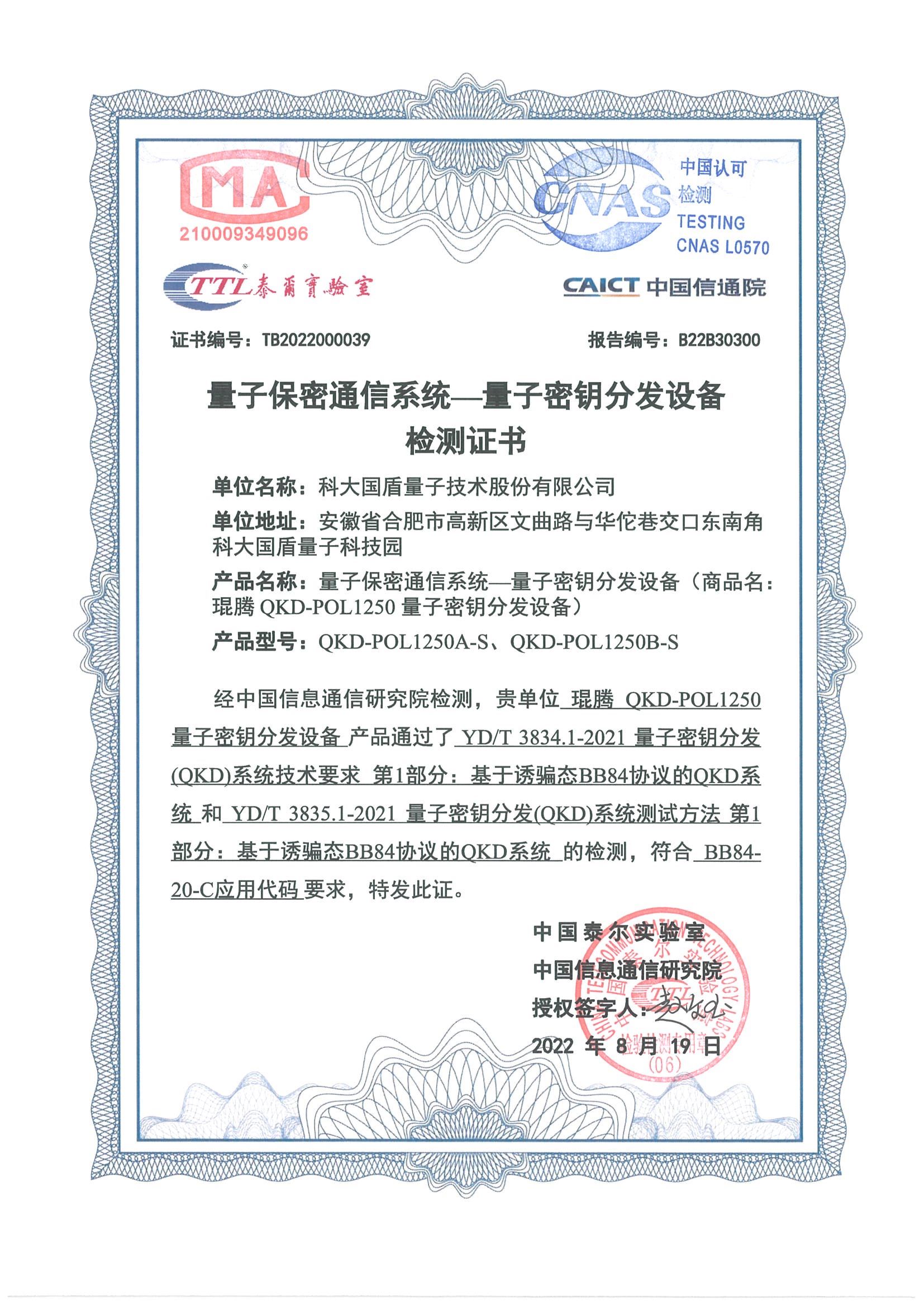 截至2023年2月,科大国盾量子技术股份有限公司、国开启科量子技术(北京)有限公司、世融能量科技有限公司等三家公司共通过7项产品的测评验证,并获得检测报告与证书。